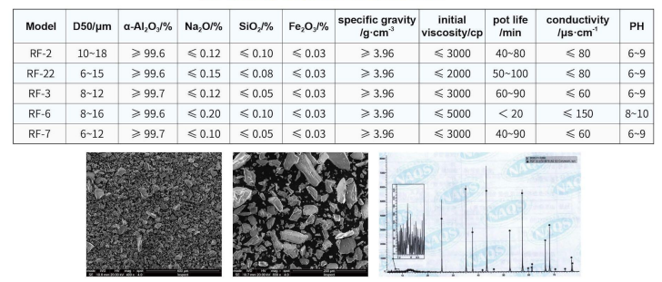 产品特点:粒度分布合理,纯度高,α相转化率高,真密度大,电导率低,绝缘性能优异,与环氧树脂基体相容性好,可使时间可调整范围宽。